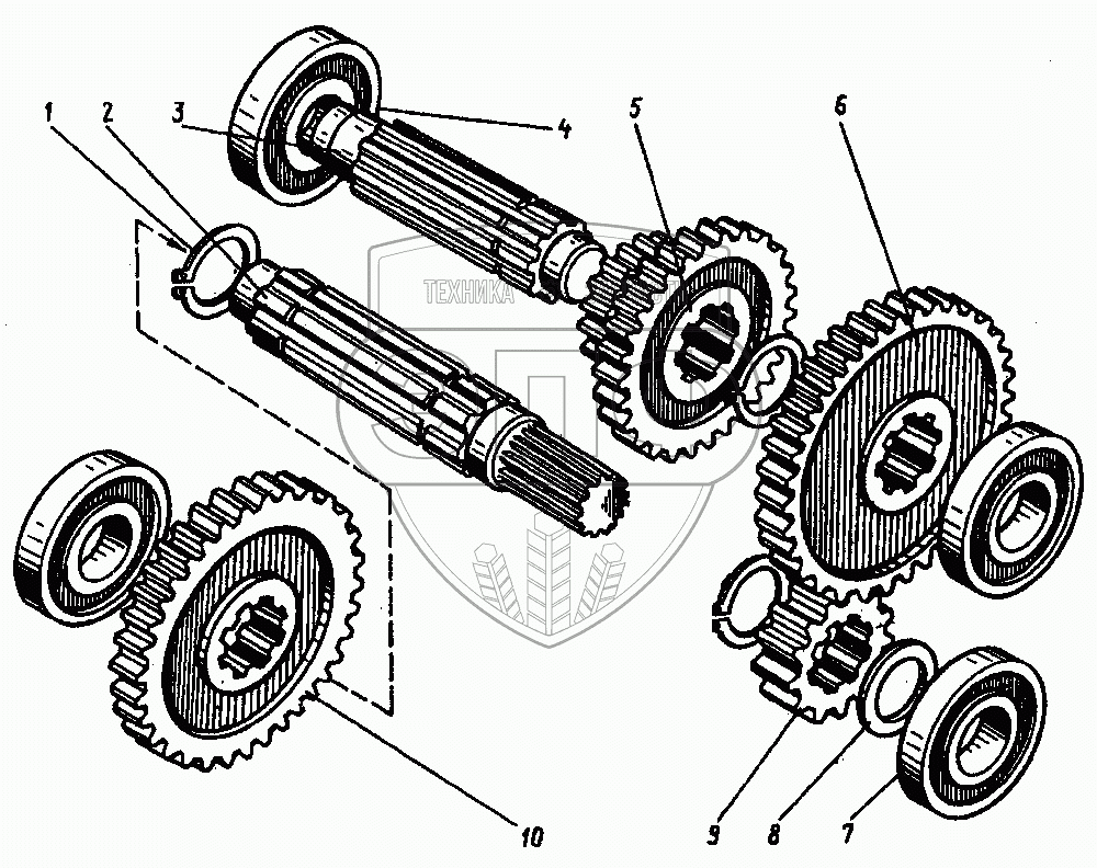 | 10 | МВГ-1202695 | Шестерня ведущая промежуточного вала | Нет на складе |