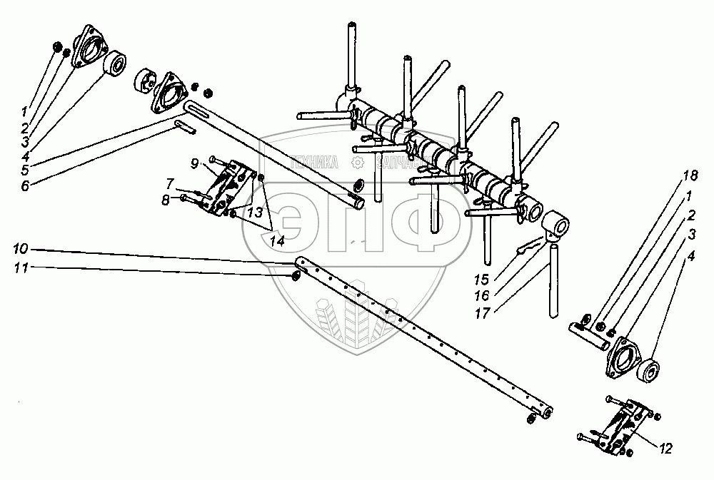 Каталог запасных частей к технике: КЗК Енисей КЗС-950. Пальчиковый механизм шнека жатки