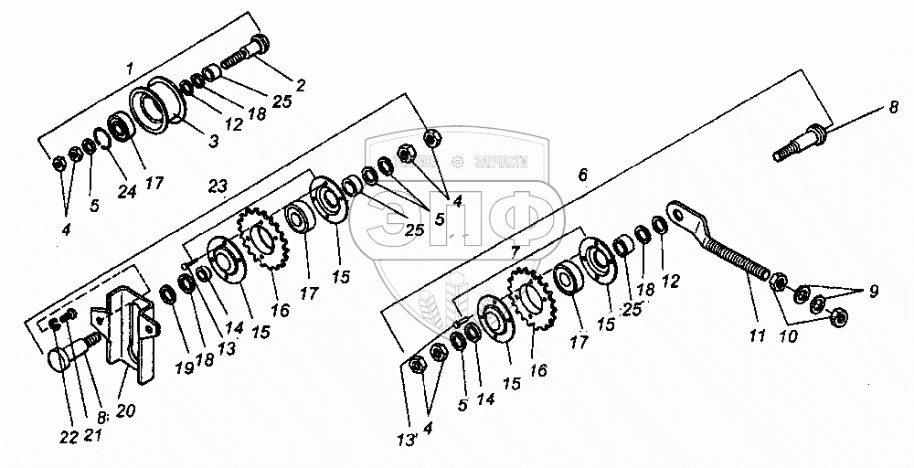 Каталог запасных частей к технике: КЗК Енисей КЗС-950. Ролики и звездочки натяжные