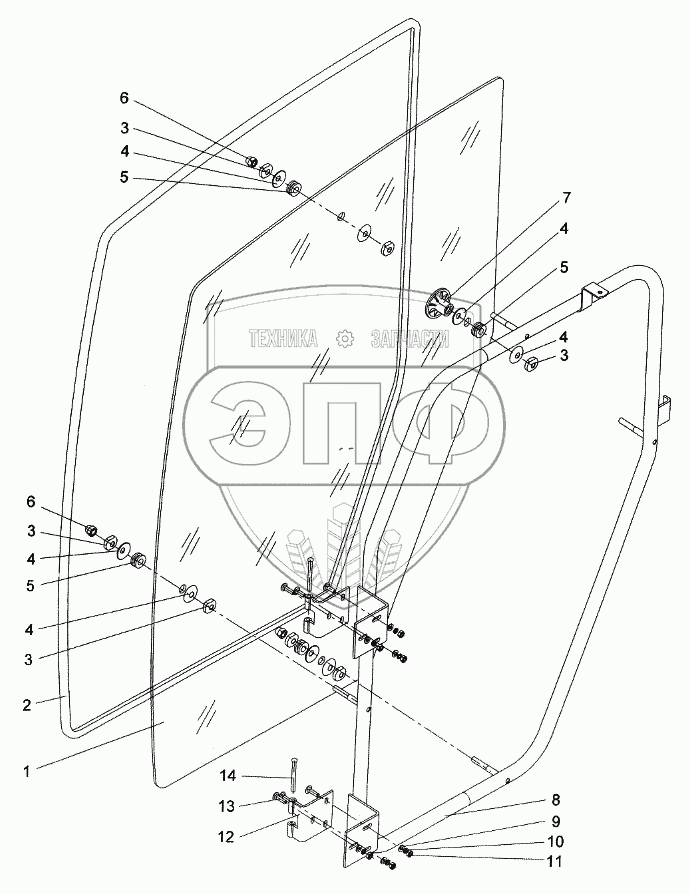 Каталог запасных частей к технике: КЗК Енисей КЗС-960. Дверь кабины правая