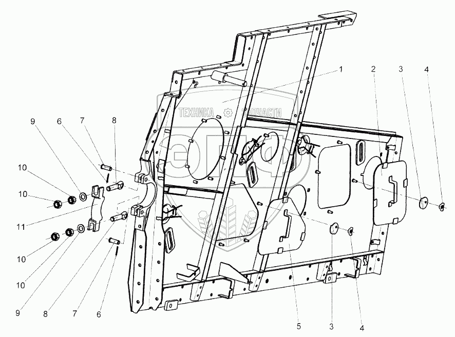 Каталог запасных частей к технике: КЗК Енисей КЗС-960. Секция панели передняя левая