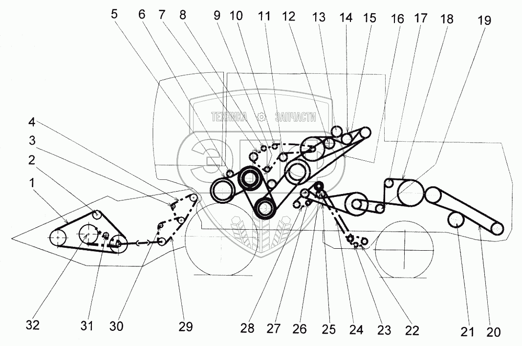 Каталог запасных частей к технике: КЗК Енисей КЗС-960. Схема передачь правой стороны