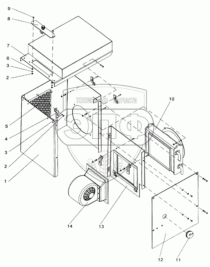 Каталог запасных частей к технике: КЗК Енисей КЗС-960. Установка отопителя