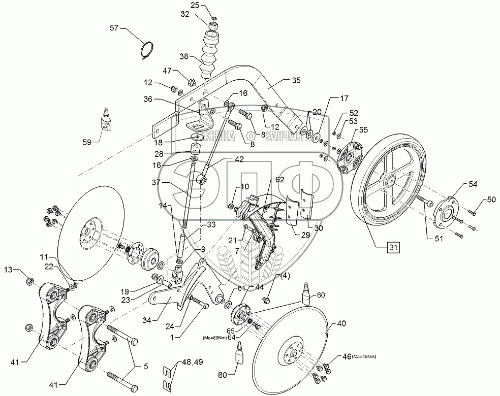 Каталог запасных частей к технике: Lemken OptiDisc 25. 68210110 Double disc coulter + roller