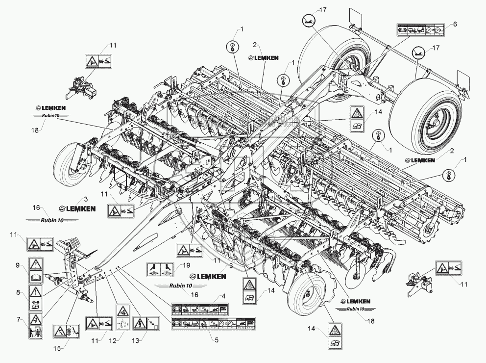 Каталог запасных частей к технике: Lemken Rubin 10/600 KUA. 59010129 Label set
