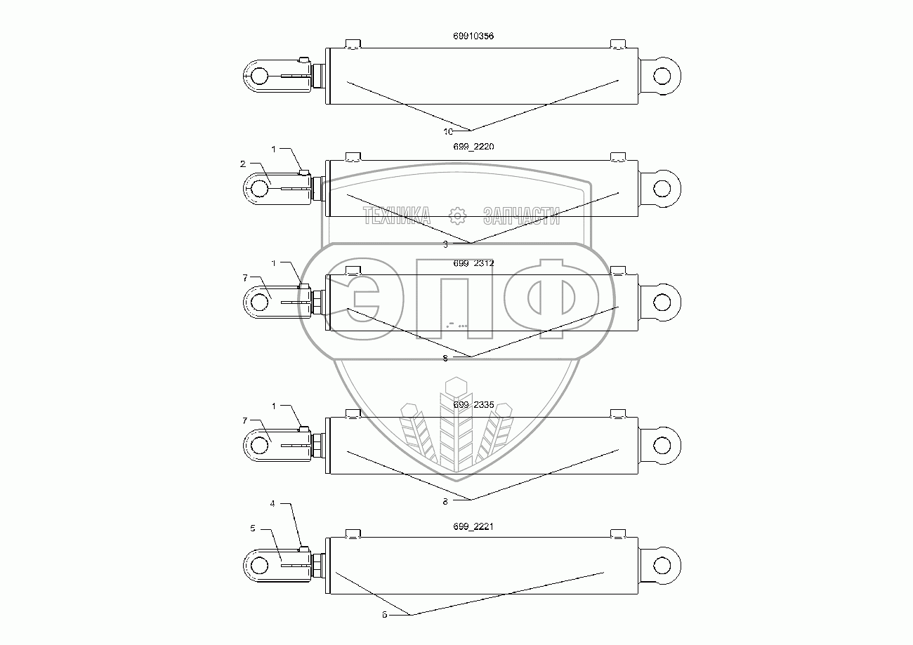 Каталог запасных частей к технике: Lemken Solitair 12/5800SW. 5752355 Hydraulic ram