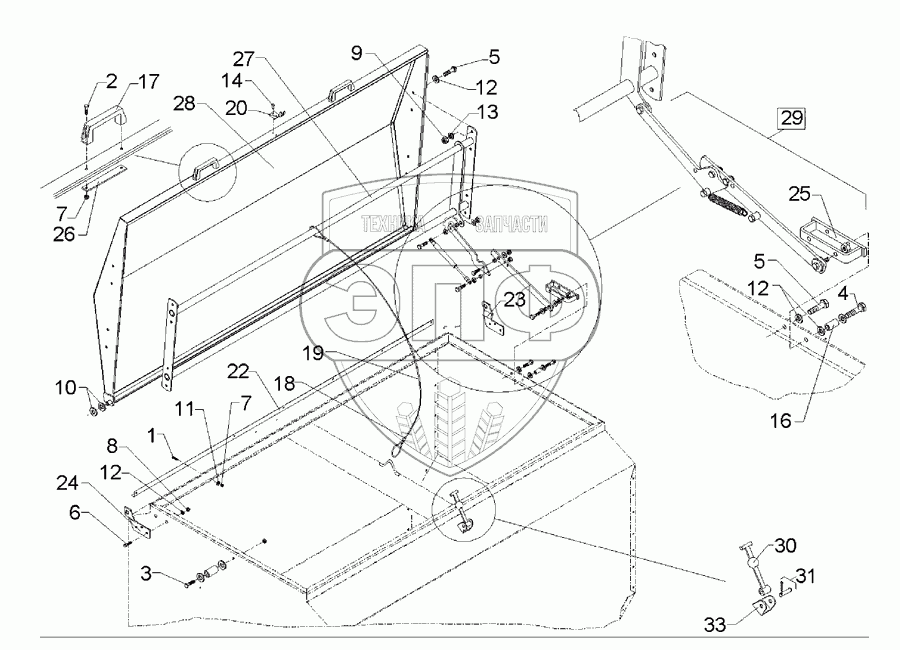 Каталог запасных частей к технике: Lemken Solitair 9/600K. Cover 1100l-1850l (170cm)