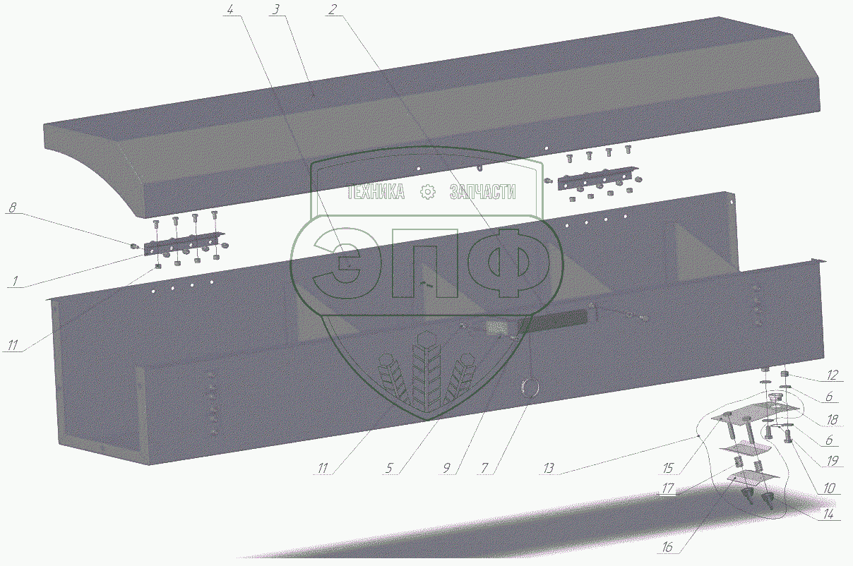 Каталог запасных частей к технике: Лидагропроммаш ППР-145. Ящик в сборе