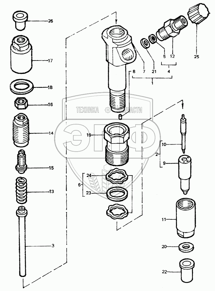 Каталог запасных частей к технике: ЛТЗ-55. Форсунка 16.1112010