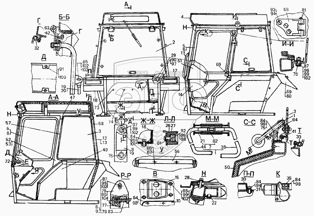 Каталог запасных частей к технике: ЛТЗ-55. Кабина