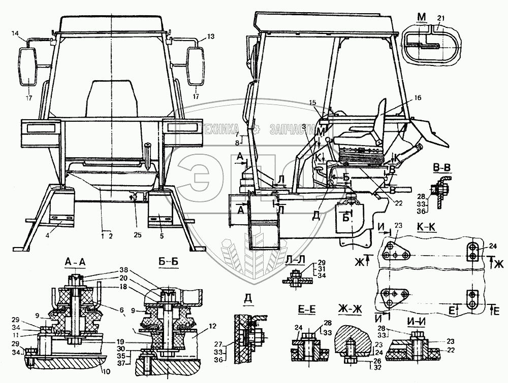 Каталог запасных частей к технике: ЛТЗ-55. Кабина с сиденьем (каркас безопасности)
