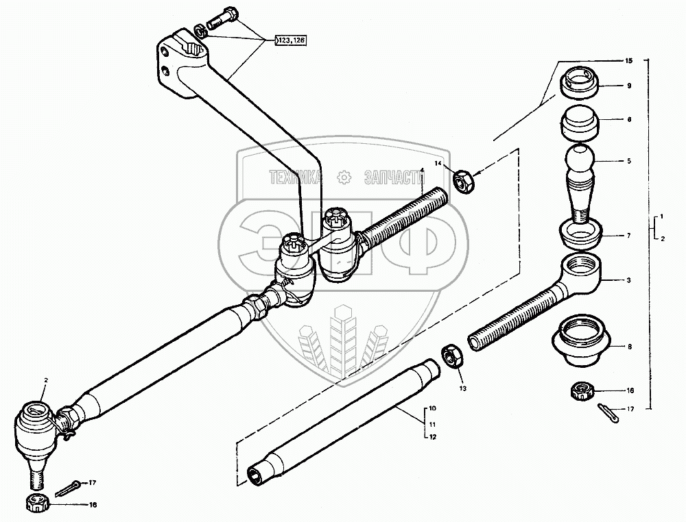 Каталог запасных частей к технике: ЛТЗ-55. Тяги рулевые