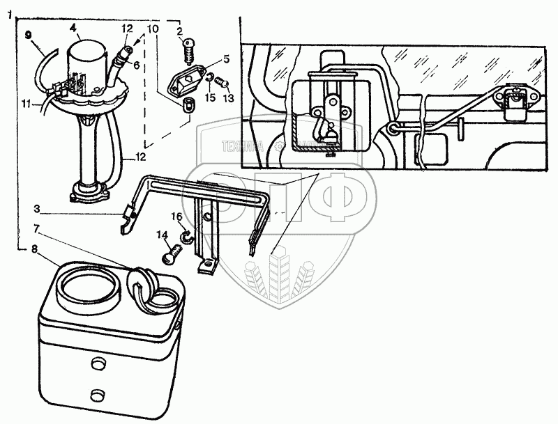 Каталог запасных частей к технике: ЛТЗ-55. Установка стеклоомывателя