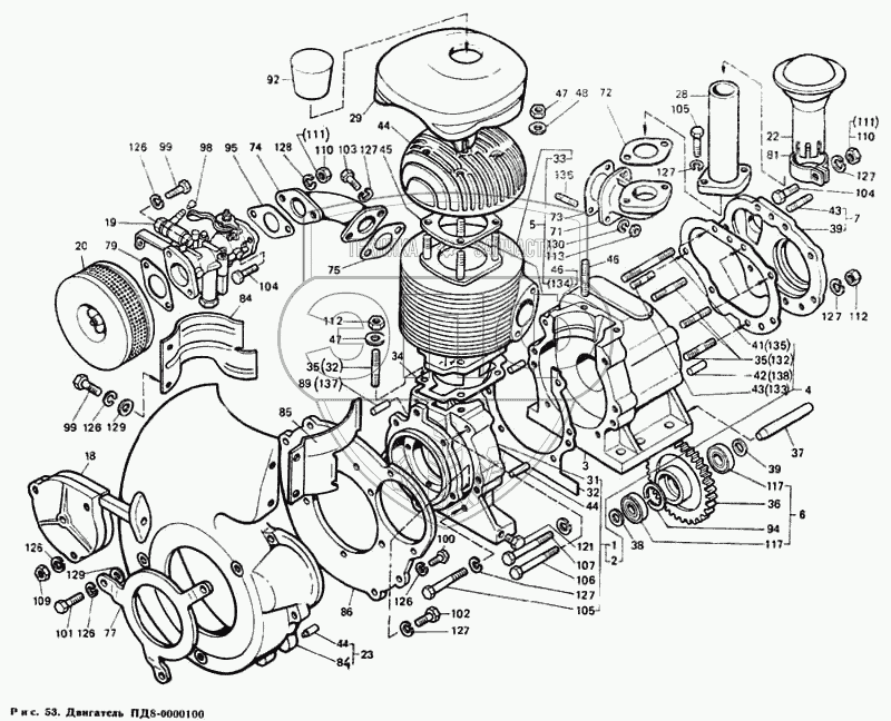 Каталог запасных частей к технике: ЛТЗ Т-40М. Двигатель ПД8-0000100