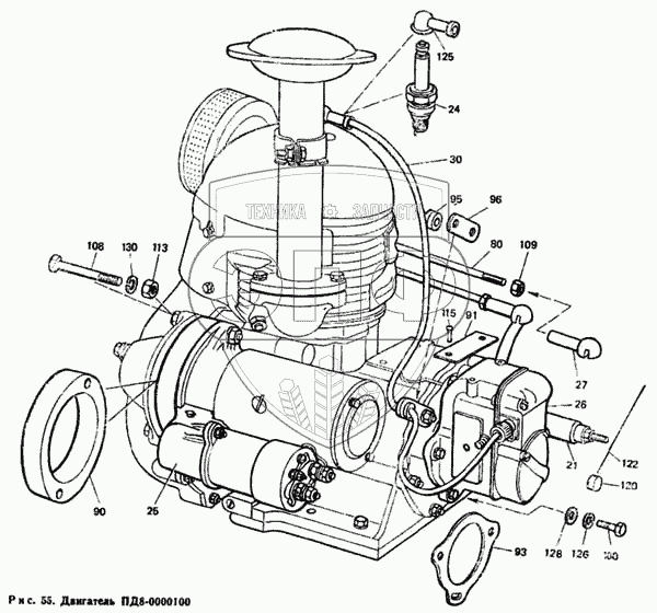 Каталог запасных частей к технике: ЛТЗ Т-40М. Двигатель ПД8-0000100