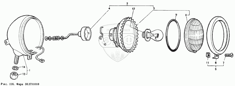 Каталог запасных частей к технике: ЛТЗ Т-40М. Фара 30.3711010