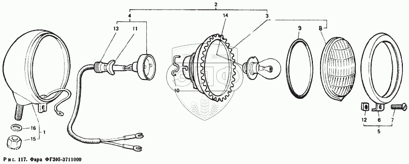 Каталог запасных частей к технике: ЛТЗ Т-40М. Фара ФГ305-3711000