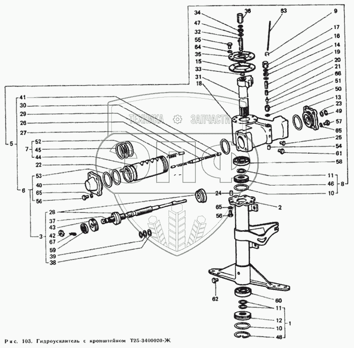 Каталог запасных частей к технике: ЛТЗ Т-40М. Гидроусилитель с кронштейном Т25-3400020-Ж