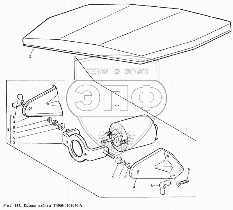 Каталог запасных частей к технике: ЛТЗ Т-40М. Крыша кабины Т40М-6707010-А