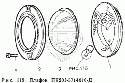Каталог запасных частей к технике: ЛТЗ Т-40М. Плафон ПК201-371410-Д