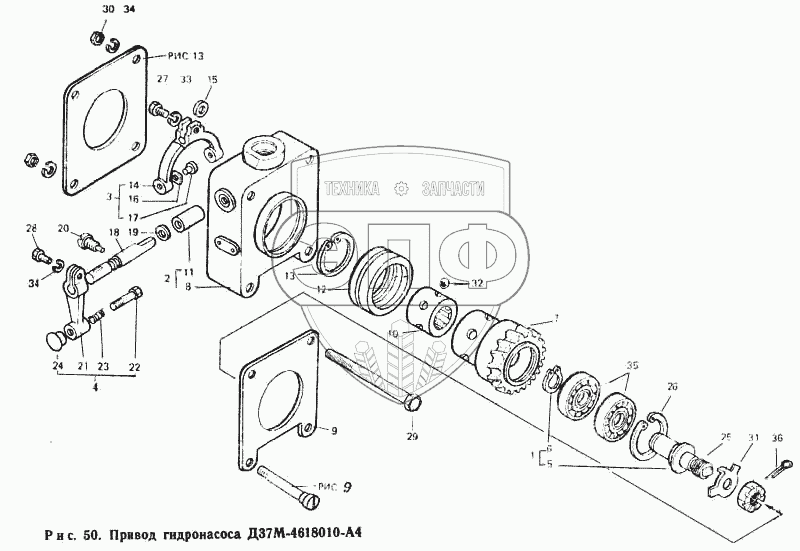 Каталог запасных частей к технике: ЛТЗ Т-40М. Привод гидронасоса Д37М-4618010-А4