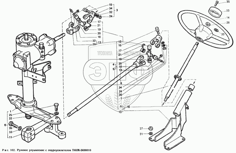 Каталог запасных частей к технике: ЛТЗ Т-40М. Рулевое управление с гидроусилителем Т40М-3400010