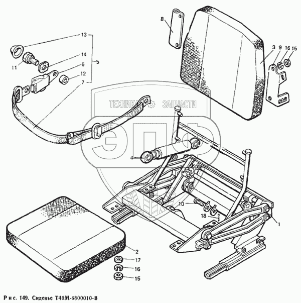 Каталог запасных частей к технике: ЛТЗ Т-40М. Сиденье Т40М-6800010-В