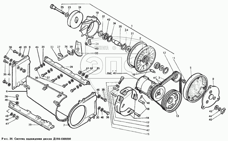 Каталог запасных частей к технике: ЛТЗ Т-40М. Система охлаждения дизеля Д144-1300200