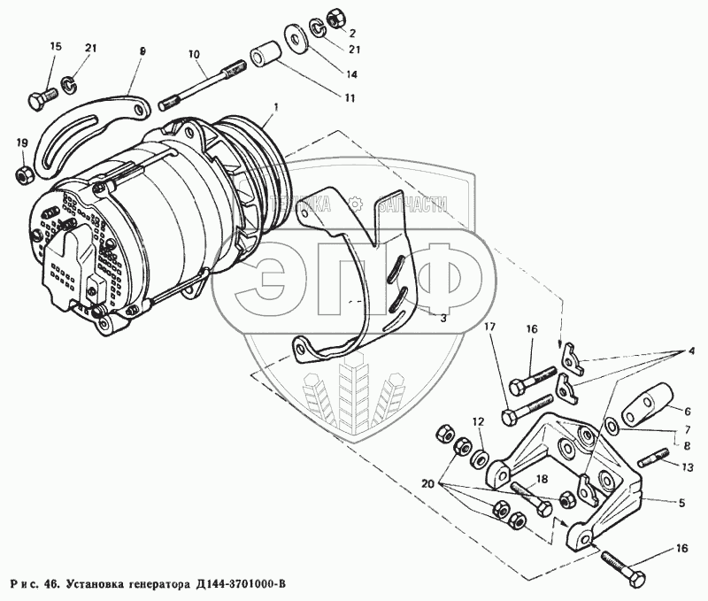 Каталог запасных частей к технике: ЛТЗ Т-40М. Установка генератора Д144-3701000-В
