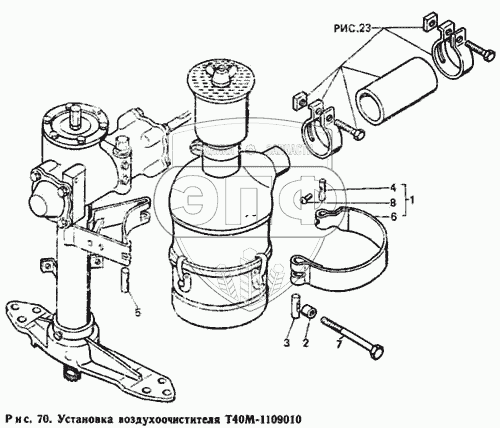 Каталог запасных частей к технике: ЛТЗ Т-40М. Установка воздухоочистителя Т40М-1109010