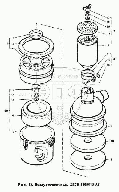 Каталог запасных частей к технике: ЛТЗ Т-40М. Воздухоочиститель Д37Е-1109012-А3