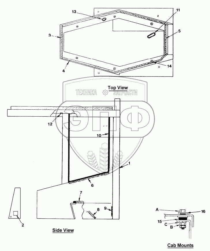 Каталог запасных частей к технике: MacDon-9250. CAB FRAME, SEALS, GROMMETS AND MOUNTS