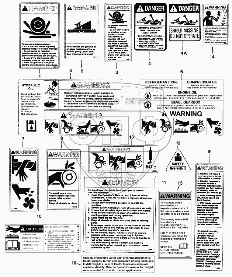 Каталог запасных частей к технике: MacDon-9250. SAFETY DECALS