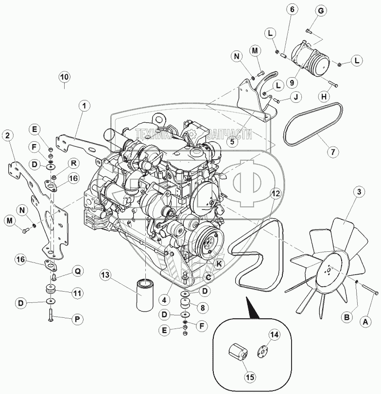 Каталог запасных частей к технике: MacDon-M105. Двигатель в сборе