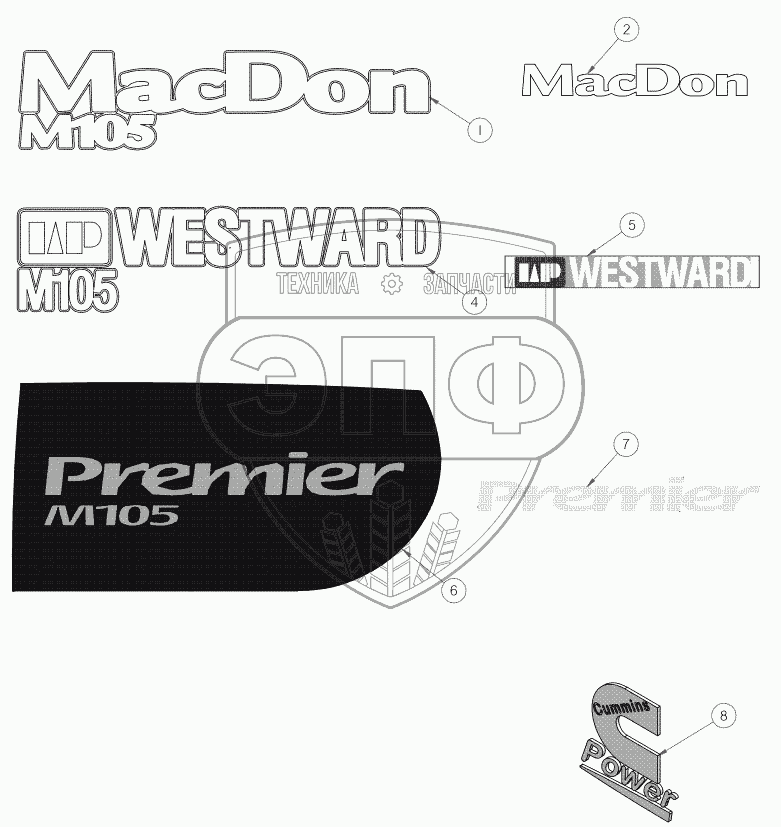 Каталог запасных частей к технике: MacDon-M105. Идентификационные детали