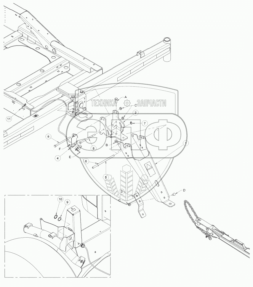 Каталог запасных частей к технике: MacDon-M105. Транспортное дышло