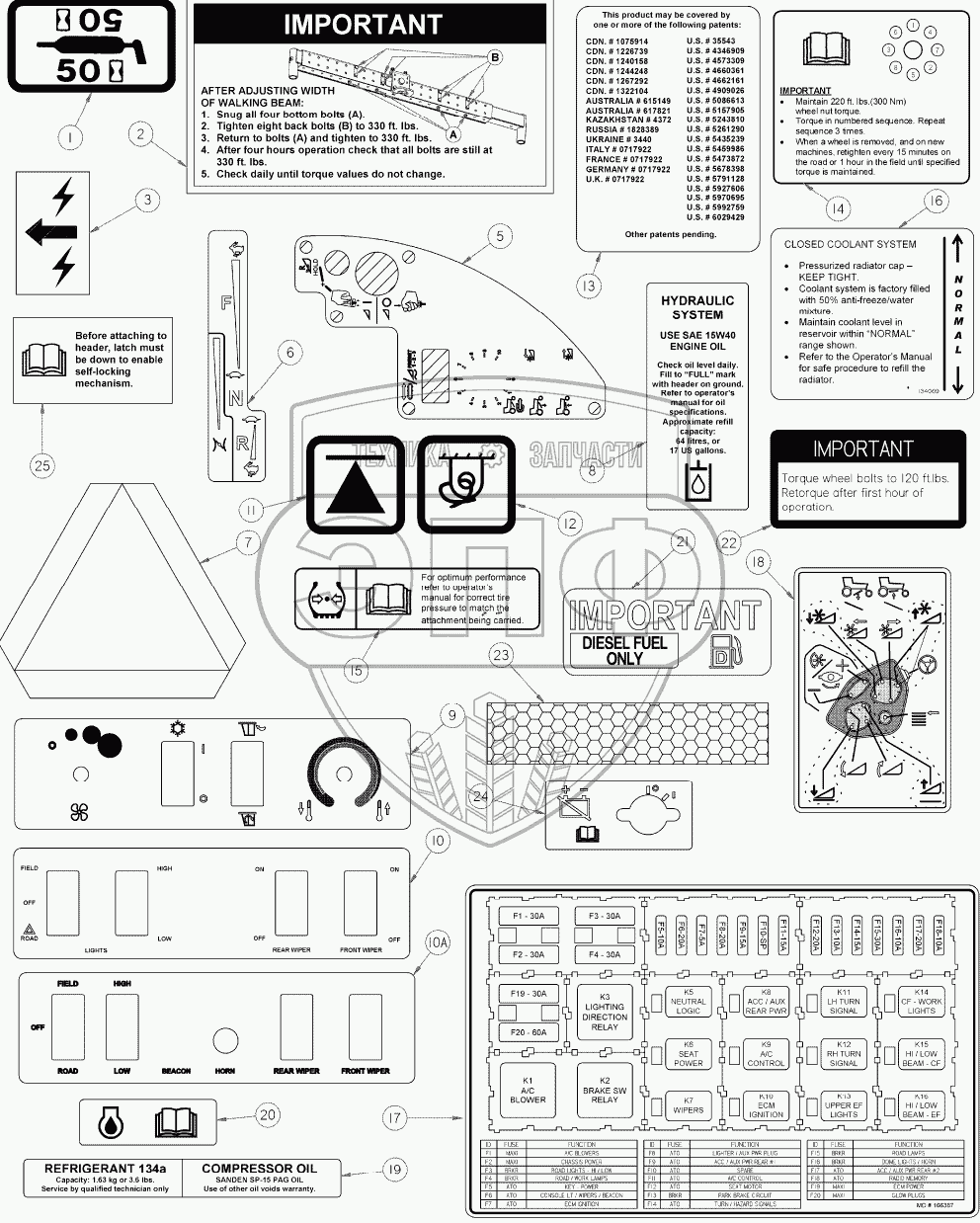 Каталог запасных частей к технике: MacDon-M155. Информационные декали,отражатели и краска