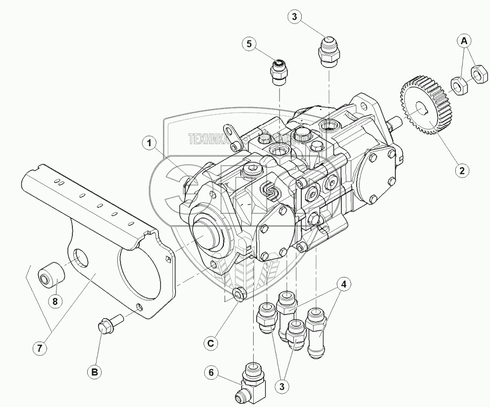 Каталог запасных частей к технике: MacDon-M155. Насосы привода хода