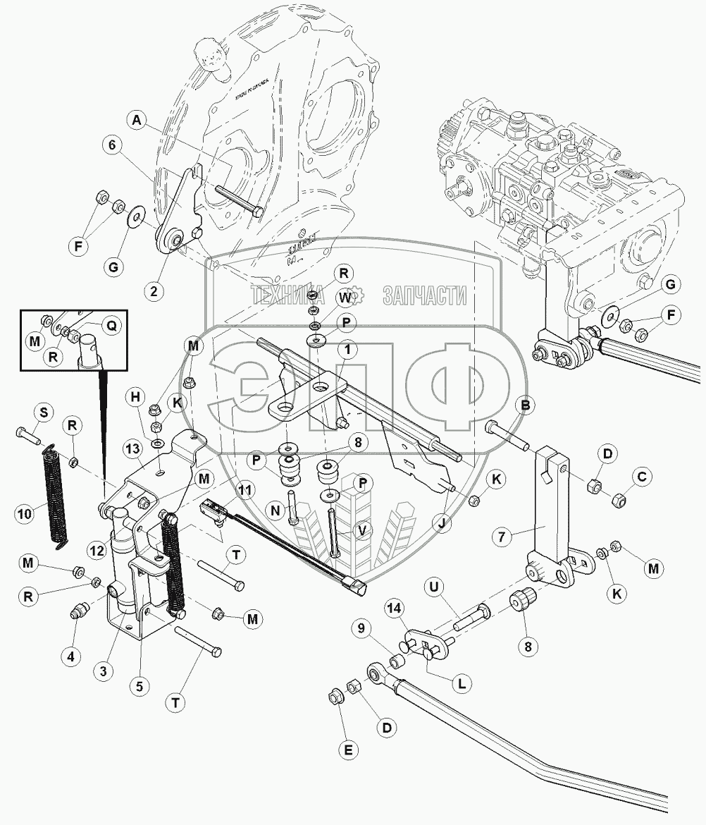 Каталог запасных частей к технике: MacDon-M155. Нейтральный замок и вертикаль. Рычаги