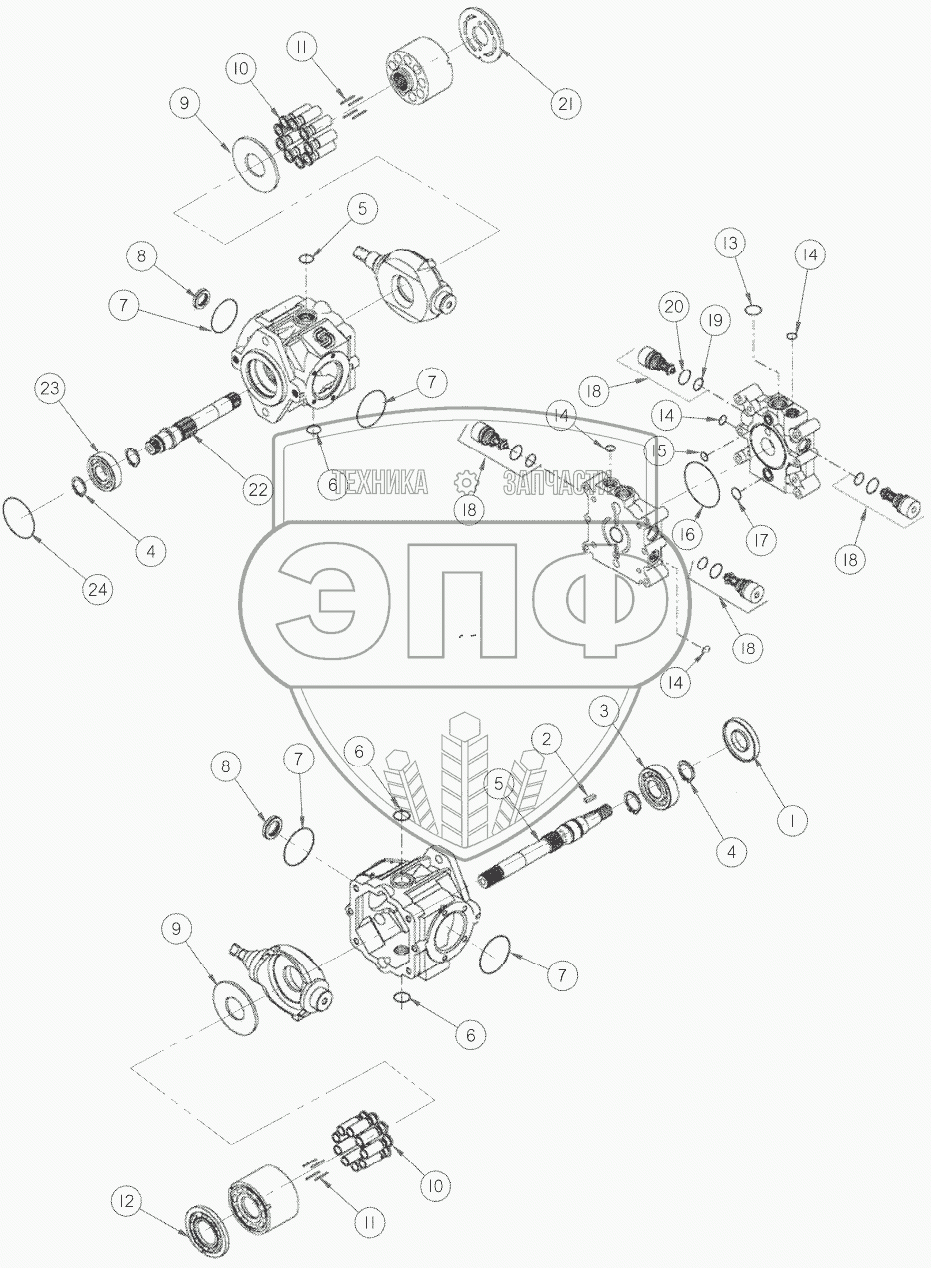 Каталог запасных частей к технике: MacDon-M155. Ремонтные части насосов привода хода