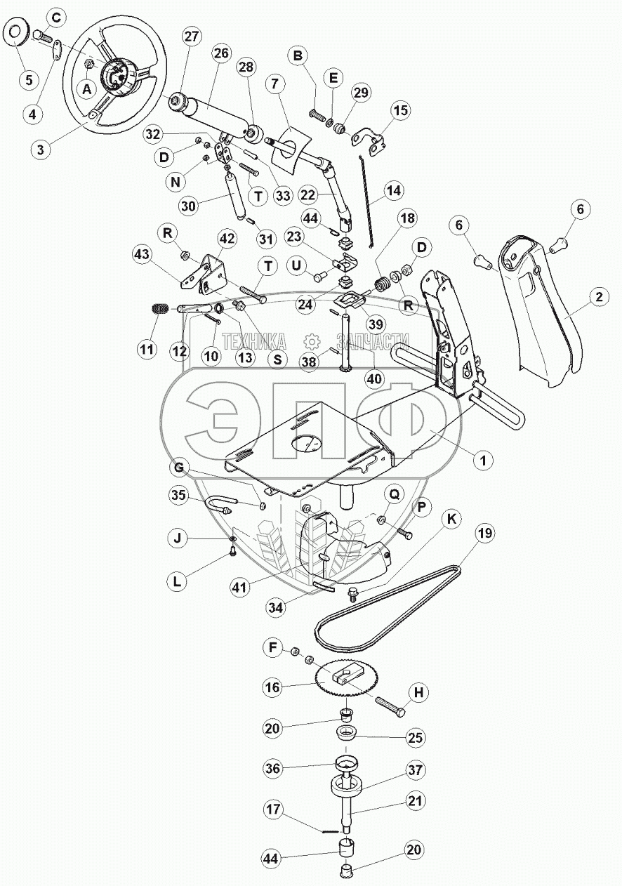 Каталог запасных частей к технике: MacDon-M155. Рулевая колонка и база сидения