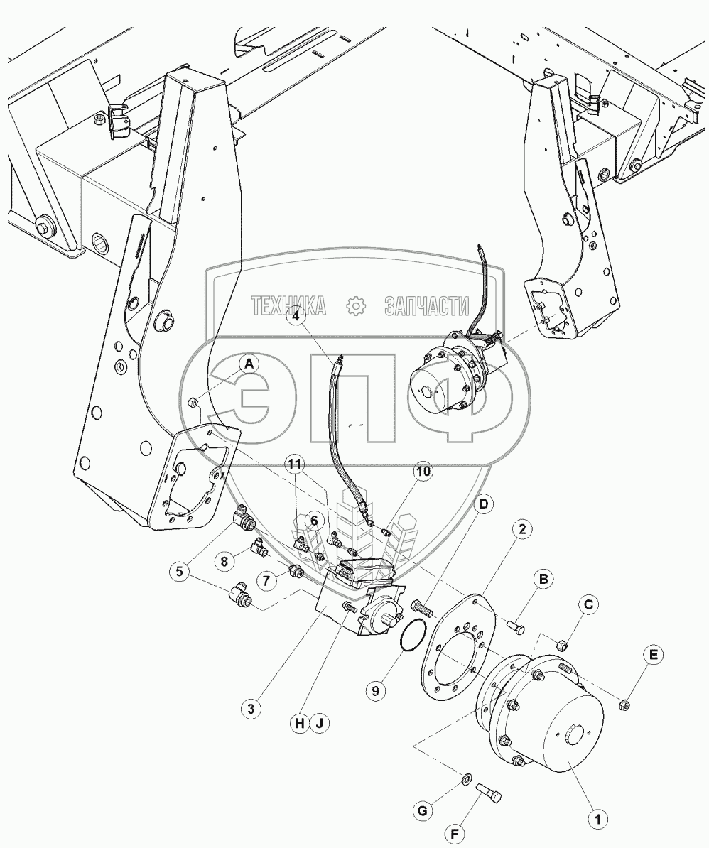 Каталог запасных частей к технике: MacDon-M155. Сборка мотора колеса привода