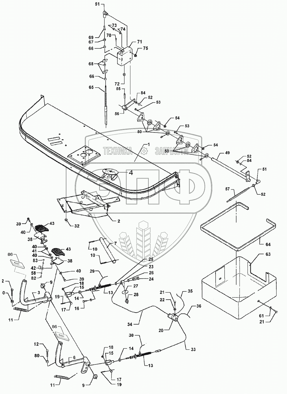 Каталог запасных частей к технике: Massey Ferguson Fend-8300/8350. Brake Pedals And Gearshift