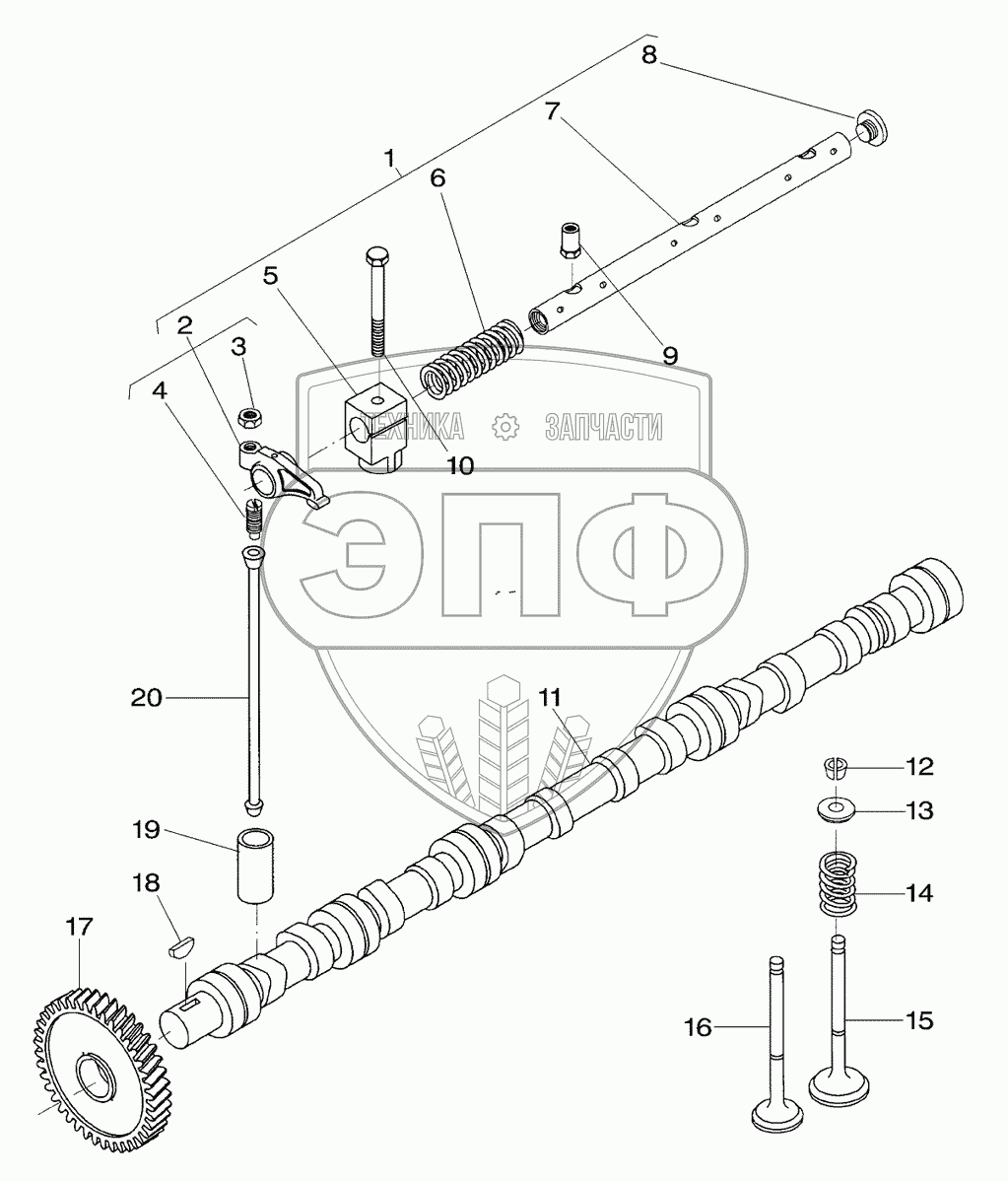 Каталог запасных частей к технике: Massey Ferguson Fend-8300/8350. Engine, Camshaft & Rocker Arm