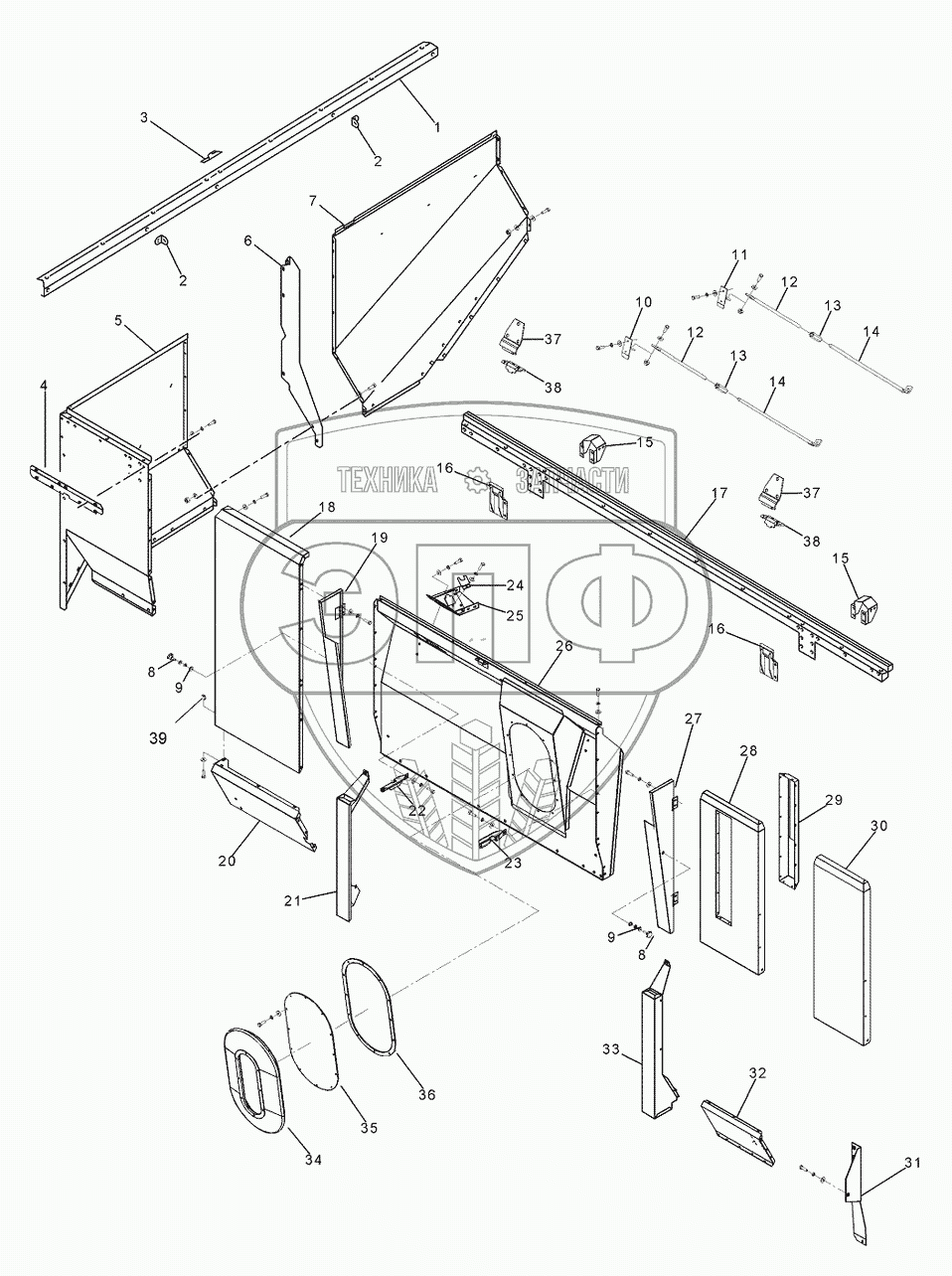 Каталог запасных частей к технике: Massey Ferguson Fend-8300/8350. Guards - Grain Tank Top
