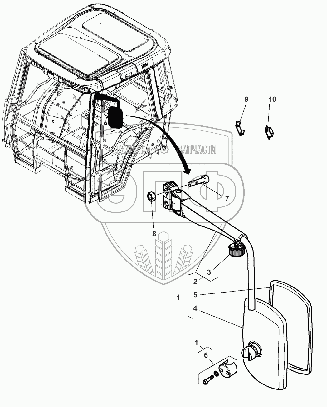 Каталог запасных частей к технике: Massey Ferguson MF-8650 Dyna-VT. External Mirrors