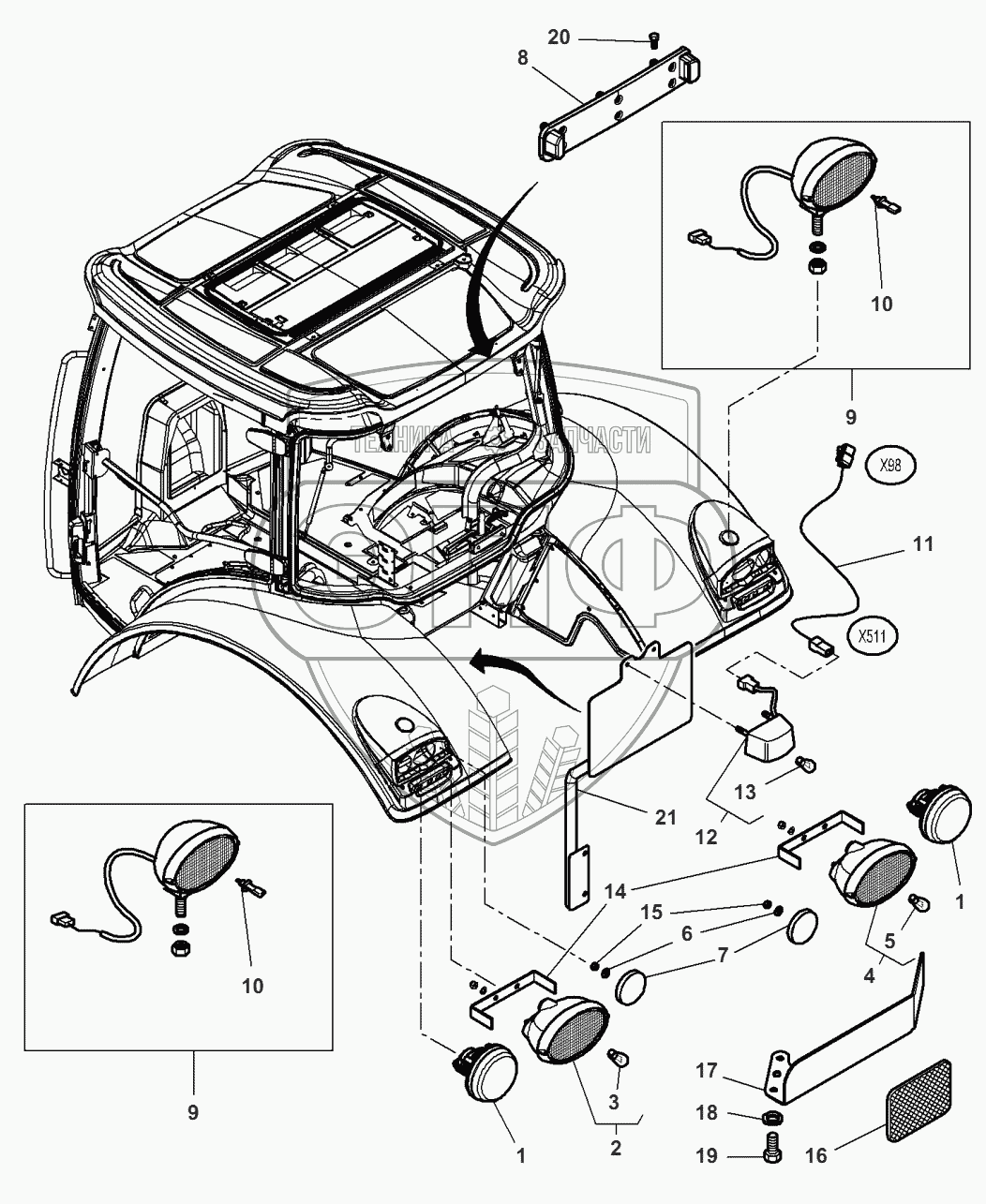 Каталог запасных частей к технике: Massey Ferguson MF-8650 Dyna-VT. Lighting Equipment - Rear