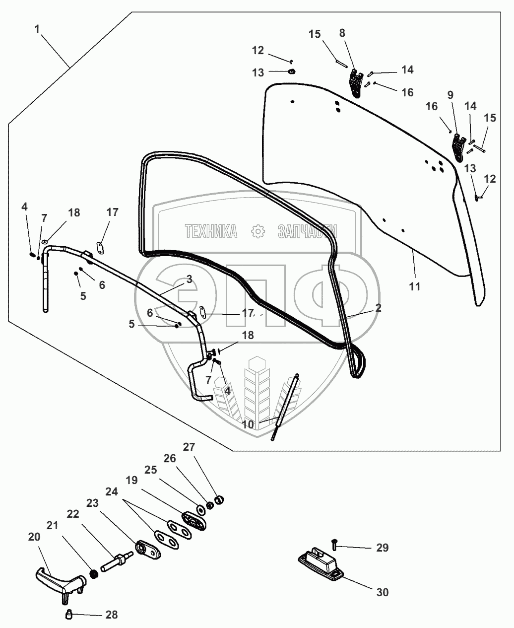 Каталог запасных частей к технике: Massey Ferguson MF-8650 Dyna-VT. Rear Window Mechanism