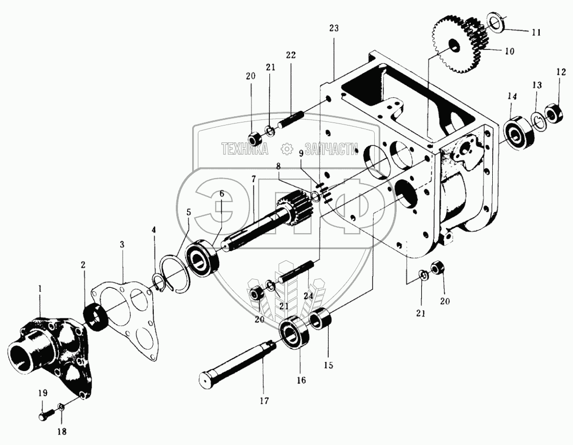 | 17 | 10T.37.120 | Вал неподвижной шестерни дополнительной передачи | Нет на складе | |