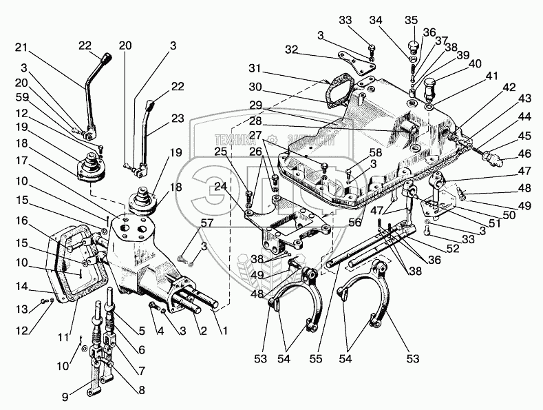 Каталог запасных частей к технике: МТЗ 1025.5. Механизм управления коробкой передач